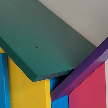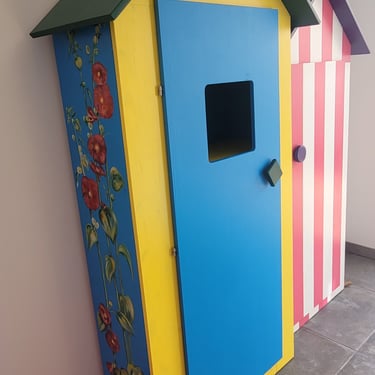 Bibliothèque décorative en pin massif, peinture acrylique et vernis satiné
