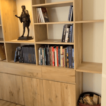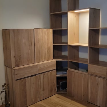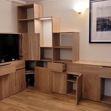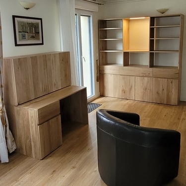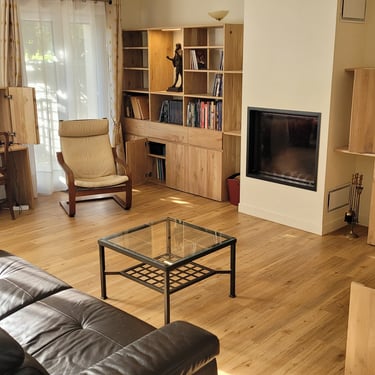 Ameublement sur mesure d'un salon de 35m2 en chêne massif